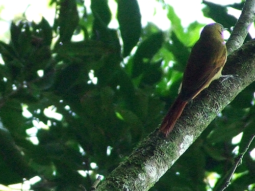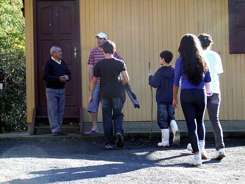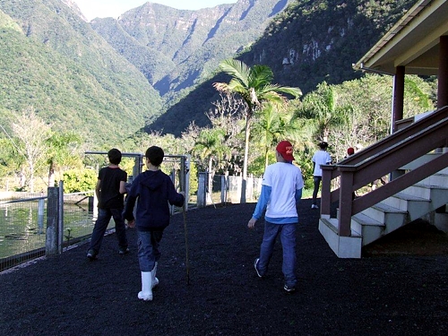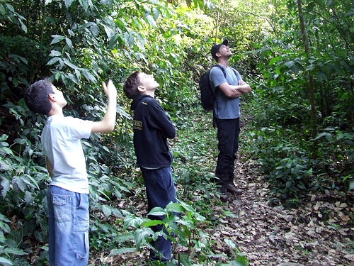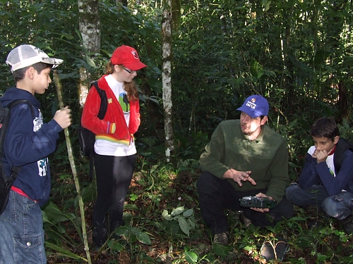 Na Reserva do Aguaí, a Seriema vive nos campos de Cima da Serra. Com 70 centímetros de altura, pouco mais alta que um peru, ela guarda diversas lembranças anatômicas de suas terríveis primas-avós, como as pernas longas e a velocidade, as asas subdesenvolvidas e o vôo raro e curto, ao qual recorre apenas quando não há outra saída, durante uma fuga necessária. Mas é no comportamento de caçadora e na dieta de carne que ela mais denota os laços com o passado. Desde que saem do ninho, seus filhotes caçam na vegetação rasteira. Agarram com os pés, imobilizam com o bico, batem a presa no chão e engolem-na de uma vez. Não há dúvida de que o esqueleto das seriemas repete, nas linhas básicas, a ossatura das aves do terror. E se há semelhança entre os corpos, é razoável supor que a estratégia de caça também seja parecida, no passado como no presente. Tanto que, no início, se imaginou que os descendentes das Seriemas fossem as águias e os gaviões, de bico poderoso. Mas estes atacam mergulhando sobre as vítimas em pleno vôo, algo improvável no caso das aves antigas. A proposta da atividade foi destacar a ocorrência de descendes da Ave do Terror no Sul do Brasil e traçar um paralelo sobre a evolução dos predadores pré-históricos e predadores modernos. No final do encontro, houve diversas discussões sobre a apresentação do documentário e o papel do agente ambiental na gestão da Unidade de Conservação. Foram debatidos assuntos que incluíram Informação ao visitante, Atividades que podem ser realizadas dentro e fora da reserva; Principais ameaças, Diversidade de espécies; projetos ambientais e potencial turístico. Chegando aos 400 metros de altitude, o grupo instalou as armadilhas fotográficas. No final da Trilha, chamou a atenção do Júnior um fruto caído no chão. Segundo João trata-se de uma embira. A embira ou envira , é o nome de uma fibra extraída da casca de algumas árvores, para a confecção de barbantes e cordas, muito útil no meio rural.